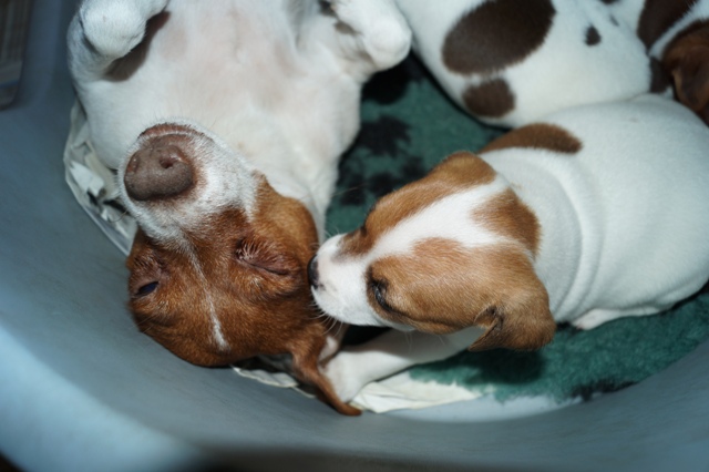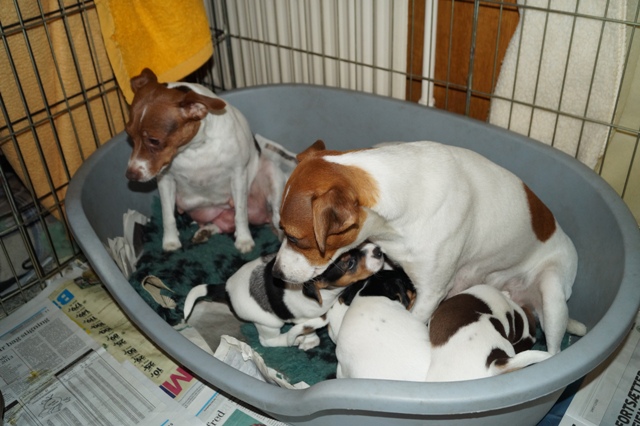 Alvoren ligger i, at den ældre tæve, i dette tilfælde Sussi, altid vil søge at overtage den unges hvalpe, og tvinge den unge væk fra hvalpene. Og det er stort set også det, der sker.