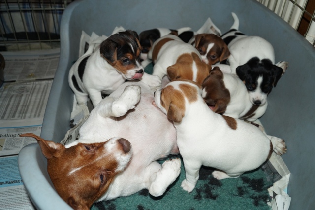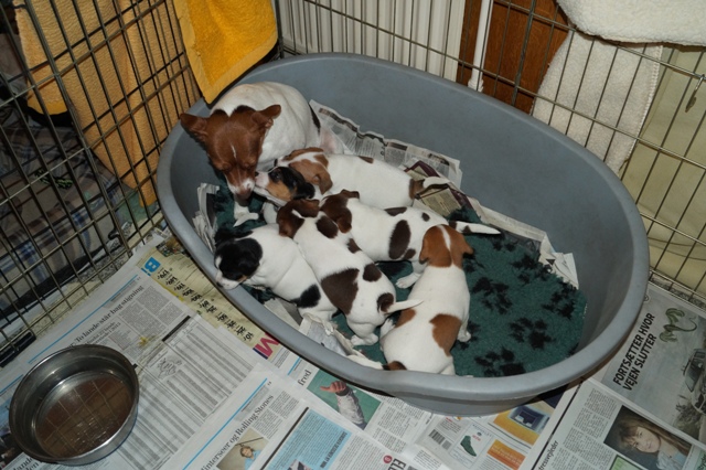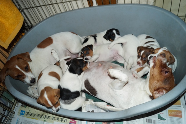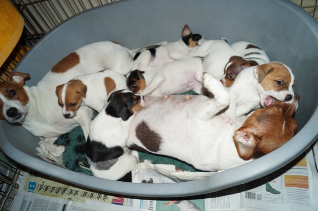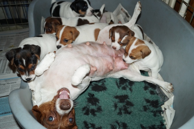 Jeg ser til at Fay får lov til at komme tilbage, og hvalpene adskilles derefter igen i hver deres løbegårde, med hver deres mor.