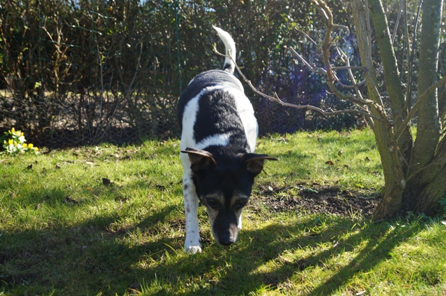 En af årets første forårsdage, hvor hundene rigtigt nyder at komme ud i haven, og bliver derude i længere tid og nyder solen