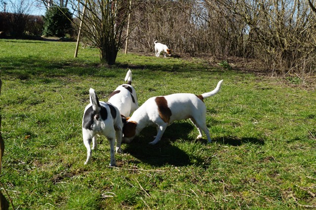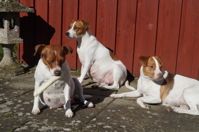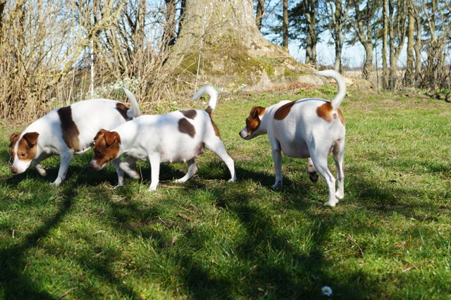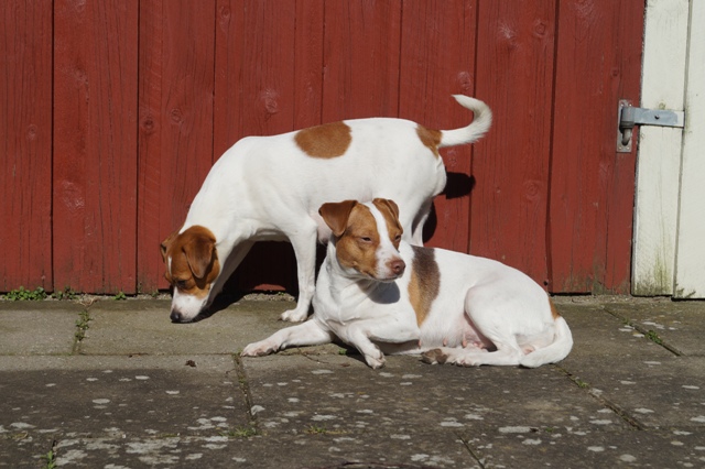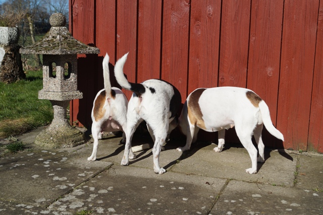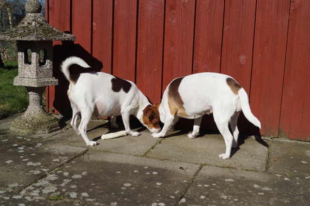 Hver en kvadratcentimeter skal gennemsnuses, der skal "flirtes" lidt med kameraet, de skal holde øje med alt ude på marken omkring os, og de sørger for at følges meget ad rundt i haven, så man ikke går glip af noget de andre måske finder... De nyder også at ligge og gasse den lidt lige i solen opad skuret hvor der er læ.