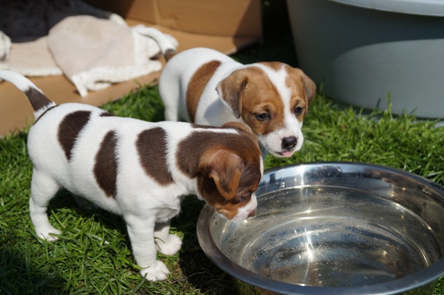 Vi tilbyder hvalpene så meget de kan spise af hvalpefoderet 4-5 gange om dagen, og vi kan se at de spiser mere og mere for hver dag.