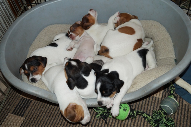 De to kuld er nu så integrerede sammen, at vi fra nu samler opdateringerne om dem til een samlet side. De leger sammen, de spiser hvalpefoder sammen og de vælger selv at lægge sig til at sove sammen. Kun om natten deler vi dem stadig op, af hensyn til deres mødre, for hvis de hver især vil være lidt hos deres hvalpe om natten, er det tilsyneladende deres egne, det handler om.