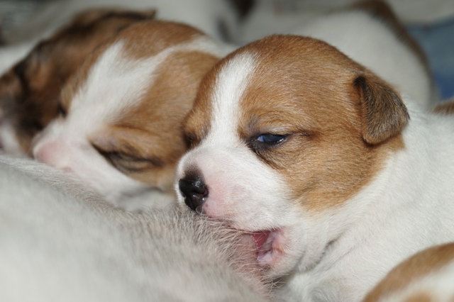 Ligeså meget man har længtes efter sommer, ligeså svært er det lige nøjagtigt når der er små hvalpe, at få det til at fungere. Ro og uendelige mængder af hvile er fuldstændigt alfa/omega for at en hvalp i denne alder kan udvikles både fysisk og psykisk på den rigtige måde. Når heden bliver så kraftig, som den har været i denne uge, har hvalpene meget svært ved at finde hvile, deres kroppe er ude af stand til at temperaturregulere endnu, og den eneste måde de kan reagere på, er ved at kravle og krabbe rundt og pibe i een uendelighed, når de ellers skulle sove.