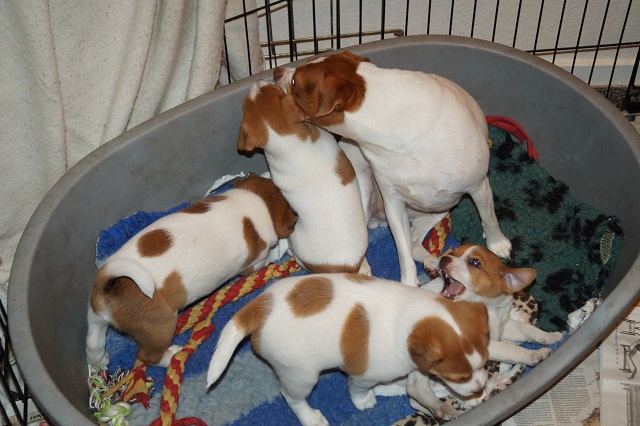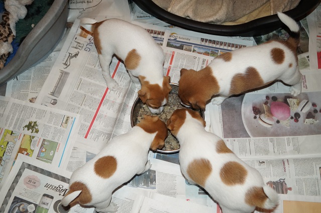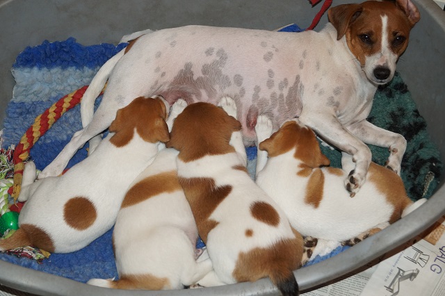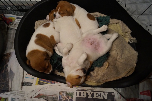 Fay sover slet ikke hos dem om natten mere, og hendes besøg i hvalpegården, er i det hele taget afmålte. Mere efter hendes behov for at få "tømt ud", end efter hvalpenes behov for hendes mælk. Kurven er knækket i denne uge, hvor hvalpene er mere afhængige af det (nu for det meste tørfoder) de indtager, end Fay's mælk. Selvom der kan ikke være nogen tvivl om, hvad de allerhelst vil have - intet slår mor!