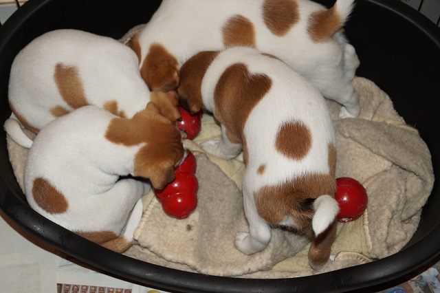 Først og fremmest leger de meget med hinanden, og derigennem etableres og skabes deres indbyrdes forhold. Men de voksne deltager også i leg med hvalpene, og derigennem lærer de også meget vigtige ting, specielt i den leg deres mor Fay deltager i. Fay er sød til at lege med hvalpene, og hun opdrager på dem samtidig. Bestemt, men kærligt, som en god mor.