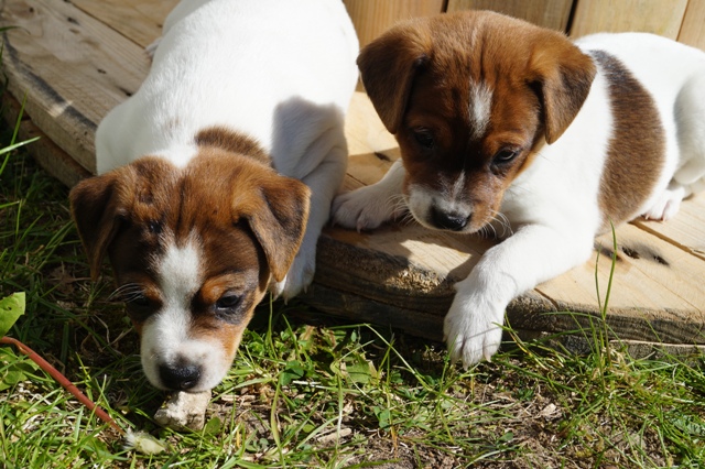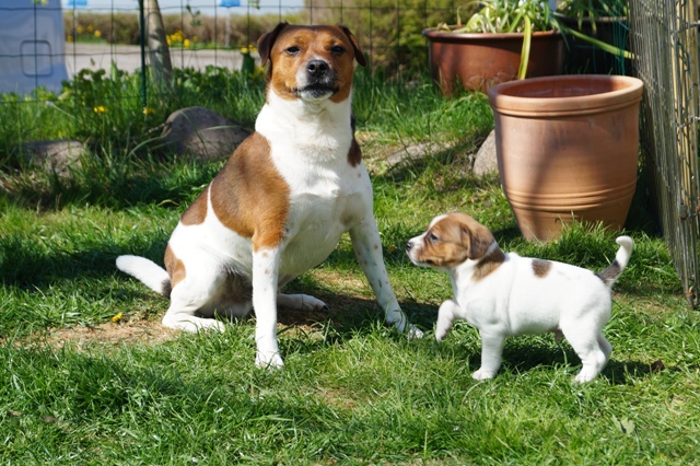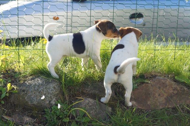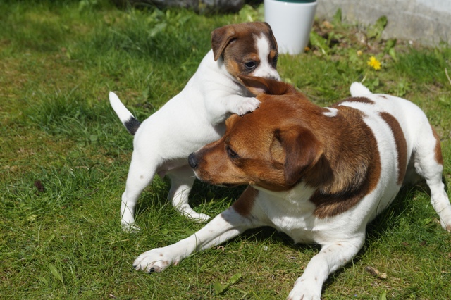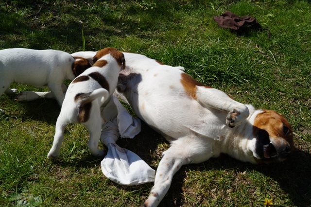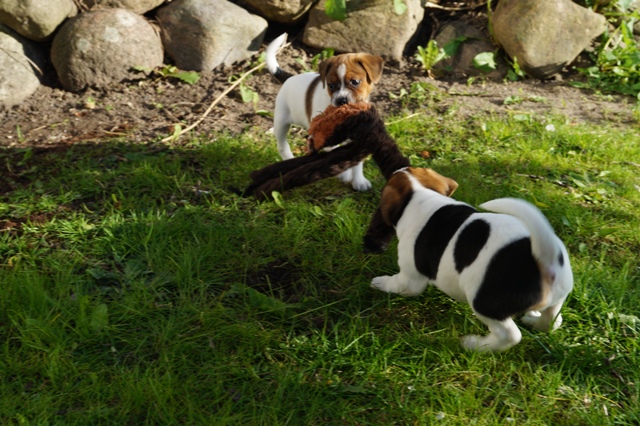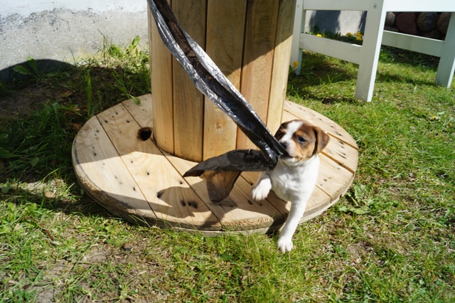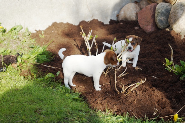 Når alt er sagt om hvalpenes "anstrengende adfærd", så må vi jo også konstatere samtidig, at de er helt normale, sunde og velfungerende, og udvikler sig fuldstændigt, som de skal. Lysten, iveren, nysgerrigheden, kræfterne, det hele er jo helt normalt for hvalpe, krydret med evnen til at indlære lynhurtigt, at finde på, og hele tiden prøve nye ting, og en vilje man må tage hatten af for...sådan er en rigtig gårdhundehvalp!