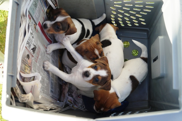 5 stk i transportkassen, klar til middagsmaden og så en lur