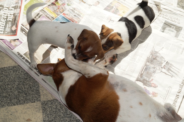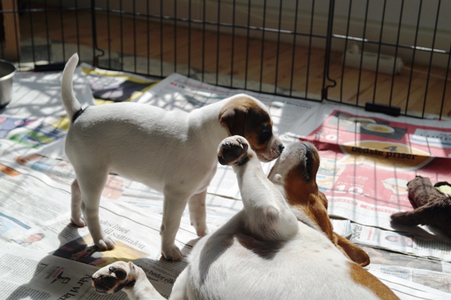 I denne periode indgår derfor en masse ting, som hvalpene udsættes for, imens vi kigger grundigt efter, hvordan de reagerer, og især - vigtigst af alt - afreagerer.