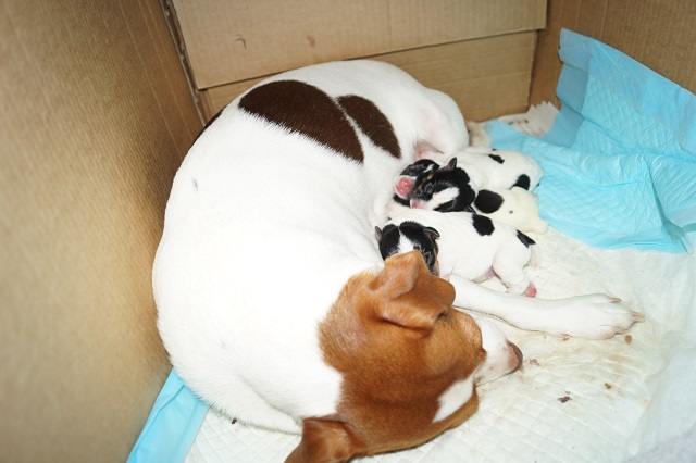 Ida er en dygtig lille hundemor, og både hun og hvalpene trives fint. Især synes Ida, som er meget madglad, at håndfodring "på sengen" er en helt ok ordning.