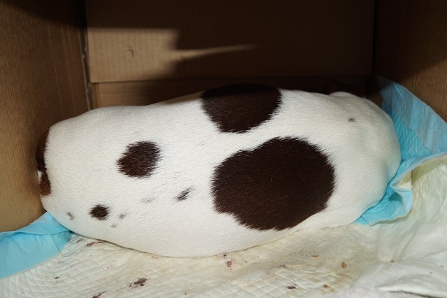 Oftest har jeg sat individuelle billeder på hjemmesiden af hvalpe allerede dagen efter de blev født. Men i respekt for netop naturens veje, og et meget tydeligt signal fra Ida, vælger jeg at lade Ida og hendes hvalpe være helt i fred. Hun vil vældigt gerne have at man sidder hos hende og snakker, men efter en tid, skubber hun hvalpene bagud i kassen, og ruller sig sammen foran dem, med ryggen til.