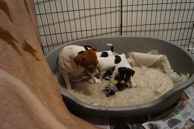 Ida er rent faktisk set flygte fra hvalpene i denne uge. Hun passer dem stadig super fint, men hun gør ikke længere rent efter dem. Mormor Sussi træder til, og gør stadig gerne rent efter dem når de tisser. Men vi trænger til lidt varmere temperaturer, fordi nu skal hvalpene snart til at komme udenfor og begynde den del af deres renlighedstræning.