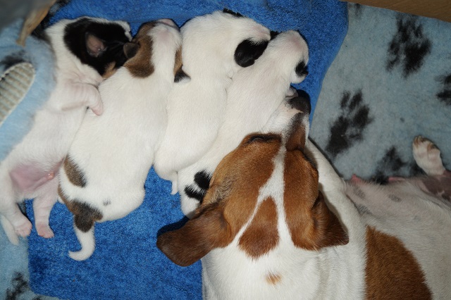 Observerer man nærmere over tid, kan man se at Vicki opdeler hvalpene i "hold", sådan at indimellem dier nogle, imens nogle andre ligger bag hende. Det er ikke fordi hun udstøder en eller flere, men fordi noget siger hende, at de ikke trænger. Det kan give anledning til lidt protester og hyleri, og man fristes let til at lægge den forurettede part til pat, for at få ro. Men nødvendigt er det ikke, det har hundemor helt styr på!